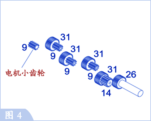 如图4所示,通过在齿轮箱的高扭矩端引入26/14的传动比,可以产生一系列附加的传动比。得出的比率由下式给出: