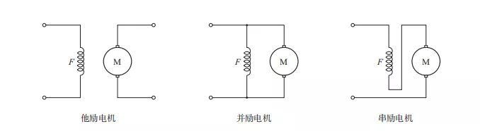 3)串励电机:电枢线圈与励磁线圈串联,二者电流相同。