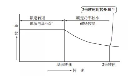 这里提到的基底转速指的是,额定转矩下转速升高,电压一定,功率达到最大值的速度。达到基底转速前,可得到最大转矩。另外,电机的转速大于基底转速时,转矩随着转速上升而下降。