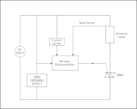 相角控制是通用电机速度控制的最简单的方法。通过TRIAC的点弧角的变动来控制速度。相角控制是非常经济的解决方案,但是,效率不太高,易于电磁干扰(EMI)。
