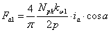 上面分析的是一对极情况,现在假设是p对极,每相绕组总匝数为Nph,则A相基波幅值为:
