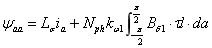 由于B相绕组与A相绕组空间相差120°,其与自感方式基本相同,只需将积分区间由 [-π/2 π/2]修改为 [-π/2-2π/3 π/2-2π/3] ,即可以计算A相绕组电流产生的磁场在B相绕组中感应出的磁链,具体为: