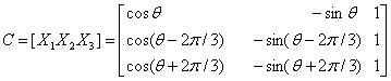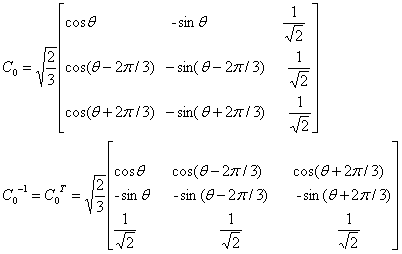 这个特征矩阵就是克拉克变换和帕克变换的乘积,该特征矩阵的逆矩阵为: