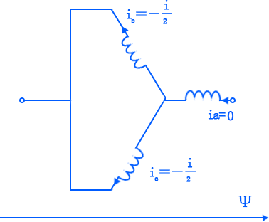B相绕组和C相绕组并联,具有相同的磁链,因此只计算B相绕组的磁链:
