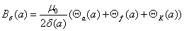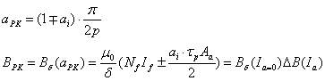由于电枢反应,最后合成的磁场就会发生扭曲变形,在正常工作的极区也不再是匀强磁场。如图所示,通过电枢反应产生的磁场扭曲会强化进入极边缘处的场强,弱化离开极边缘的场强,而这种扭曲程度取决于电枢电流的强度。aPK 为极边缘的圆周角度,那么此时在磁通密度在极边缘的分布为