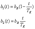 考虑换向过程中的电阻切换,电刷相对换向器有运动速度υK ,和换向器的接触宽度是时变的。把原来换向片1部分接触宽度记作b1,有电阻RB1,后来接触换向片2的宽度记作b2有电阻RB2,那么